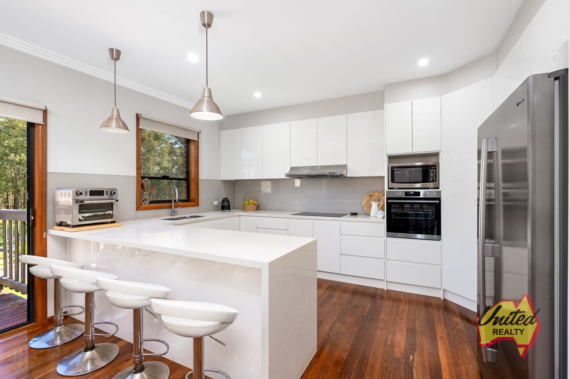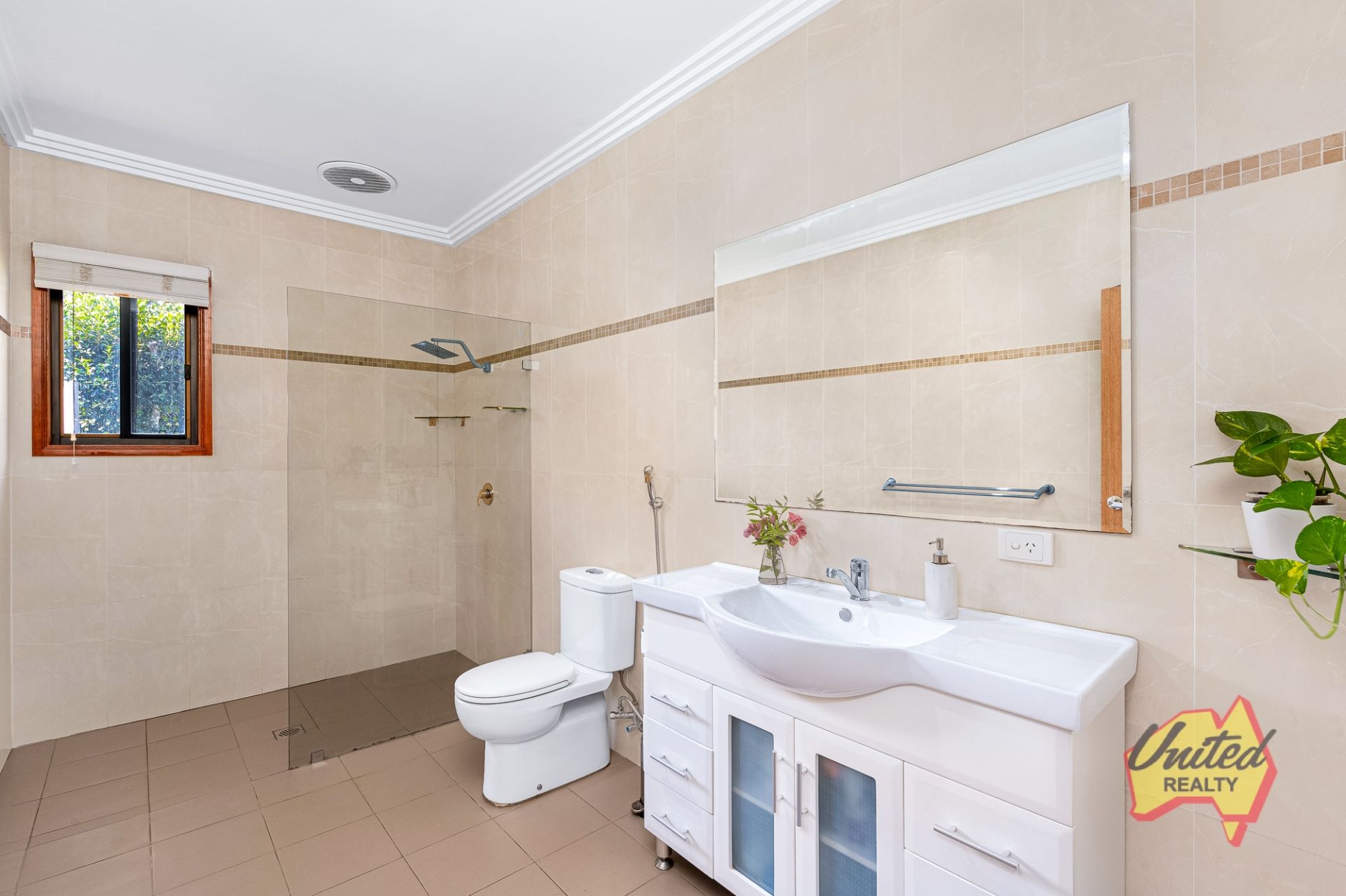 • A generously sized, modern laundry with ample cupboard space and external access.
