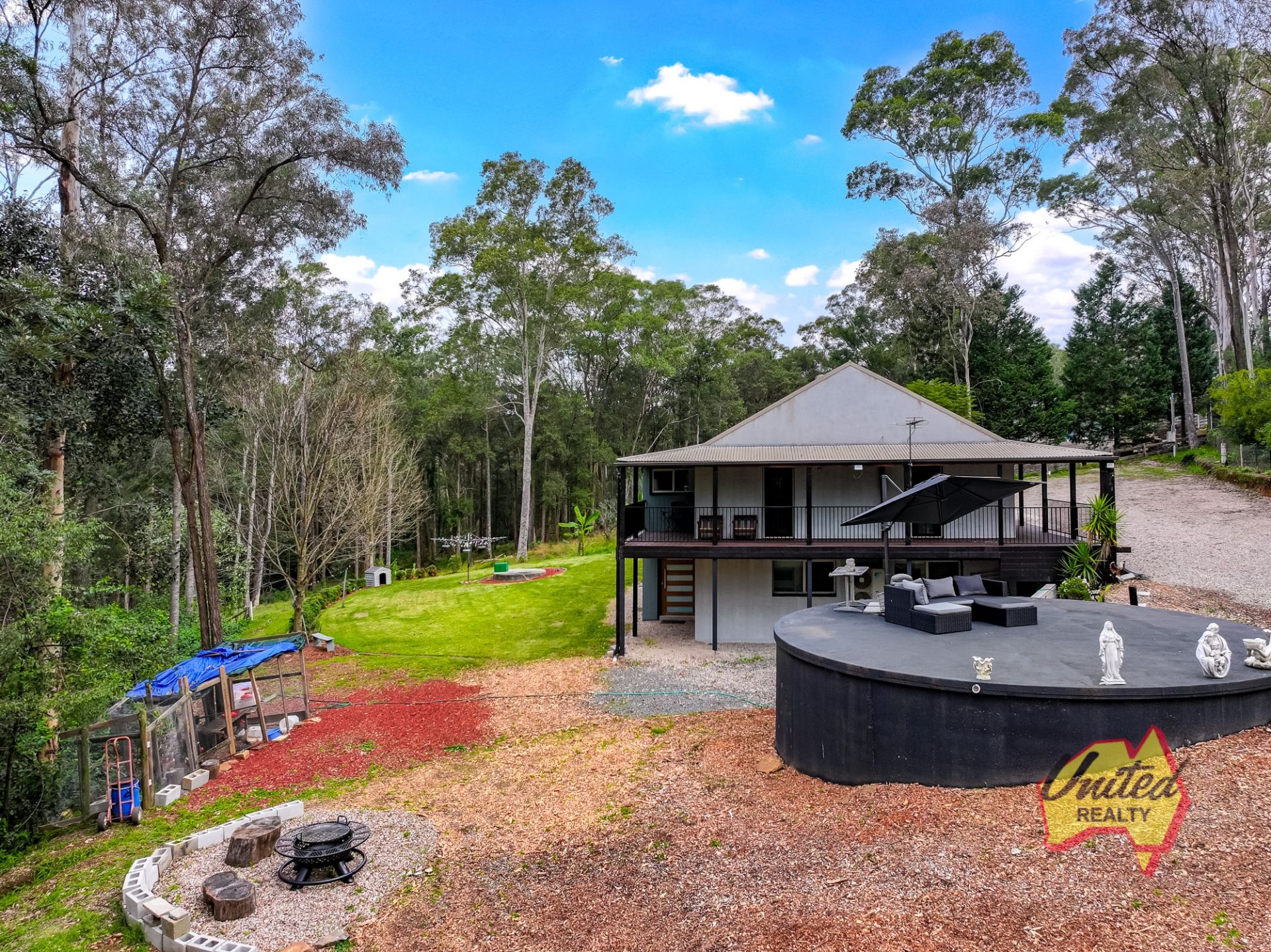 • Wrap-around verandahs, chicken coop & garden shed.