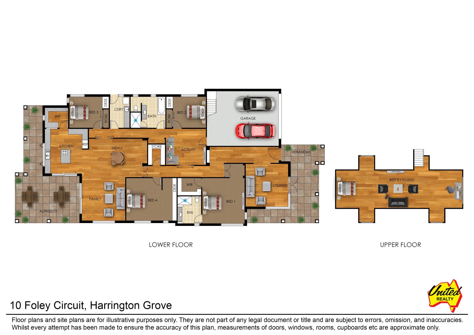 • High ceilings throughout, raked ceilings in living areas and rear alfresco.