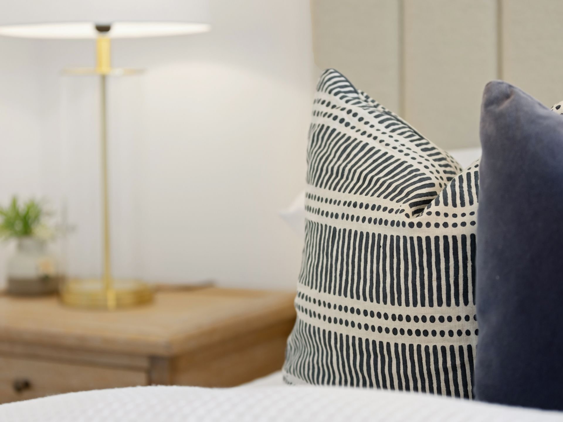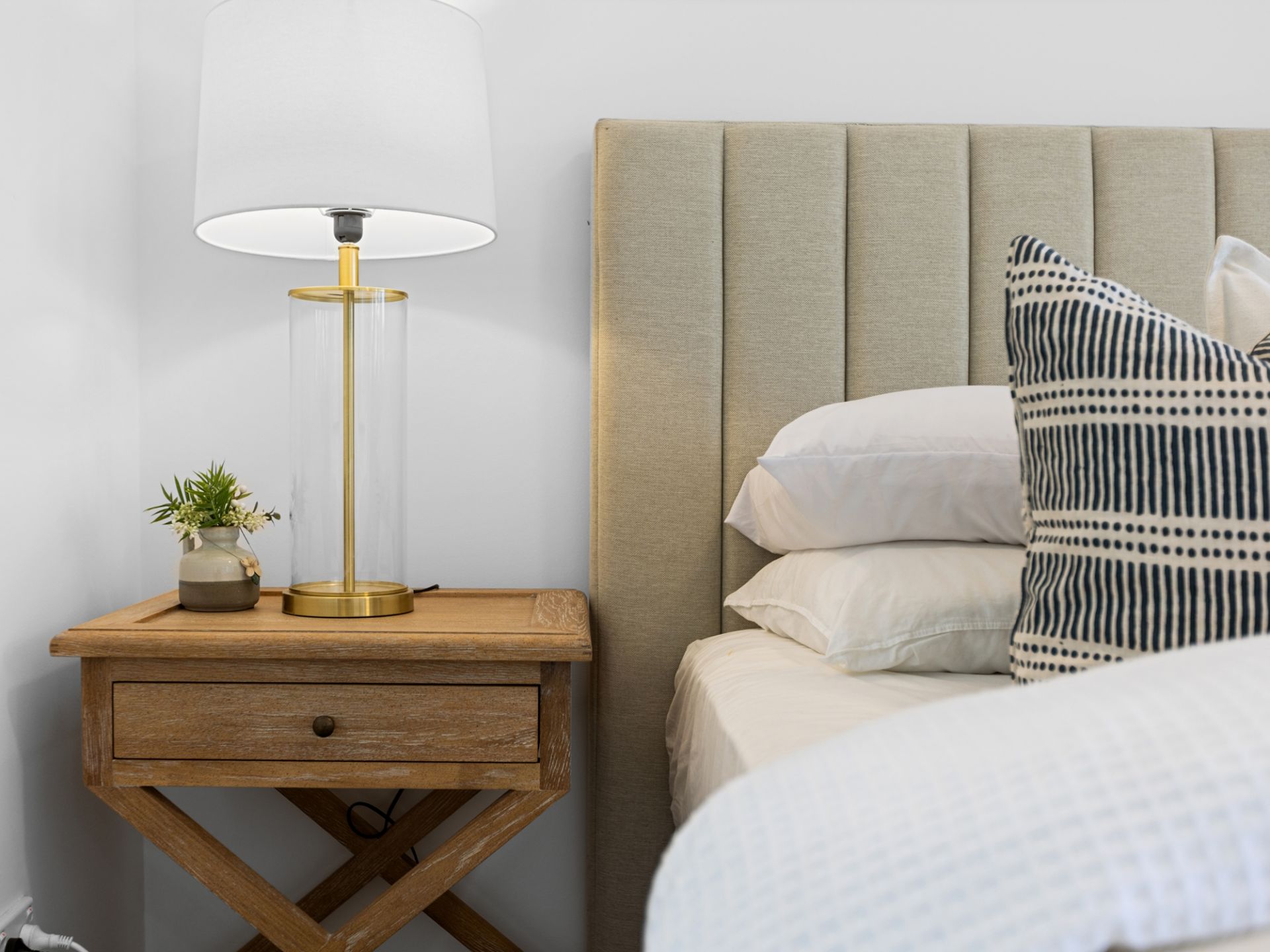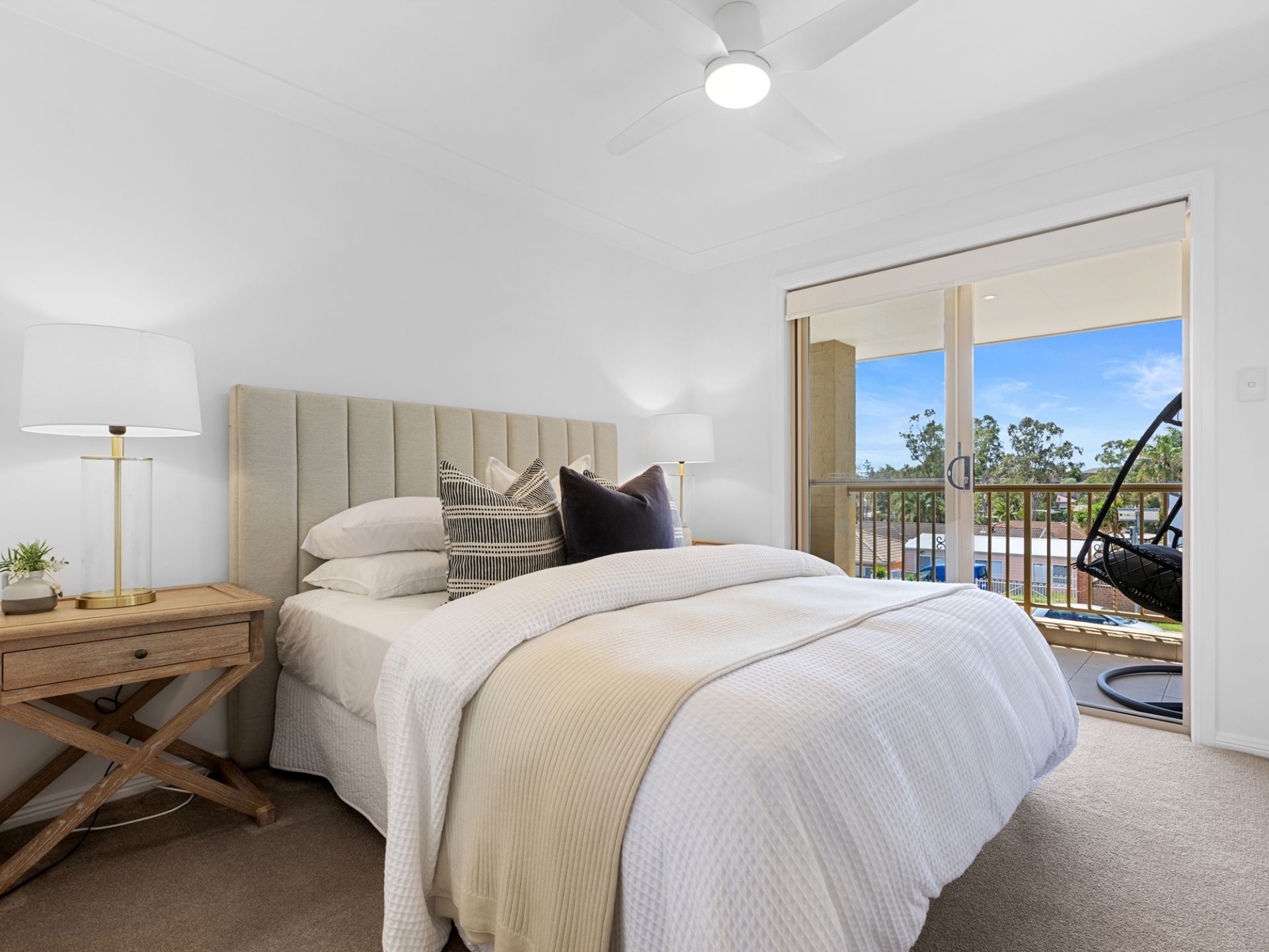 Upstairs, you’ll find the master bedroom, with a sleek ensuite boasting floor-to-ceiling tiles, a mirrored built-in wardrobe and its own private balcony. The main bathroom is equally well-appointed, showcasing contemporary fixtures and modern appeal.