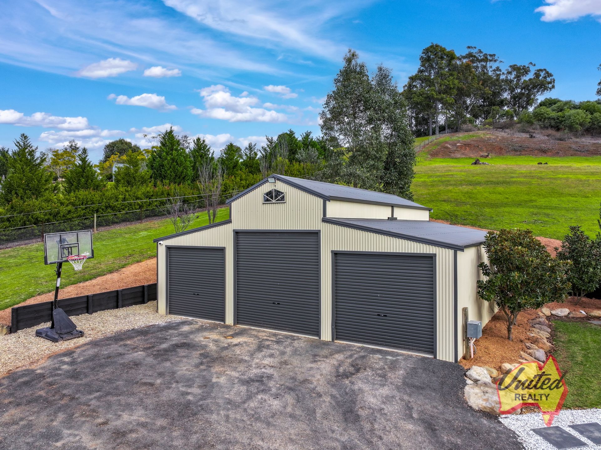 • Ample water supply with 100,000 L* water tank connected to home and shed + 5,000 L* water tank to shed.