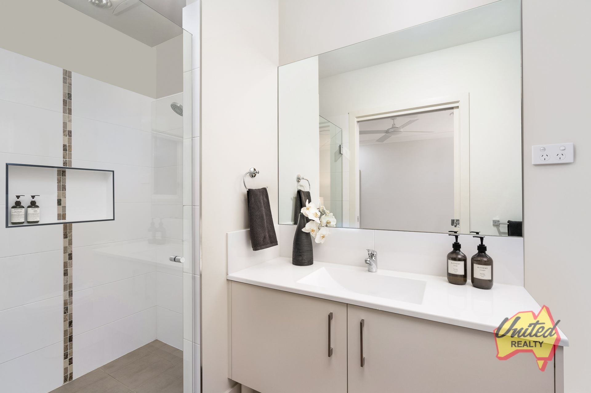 Light and airy interiors, complemented by high ceilings, enhance the sense of grandeur and spaciousness. Outside, the low-maintenance backyard features an undercover alfresco area, ideal for barbecues with family and friends, complete with outdoor blinds for added comfort.