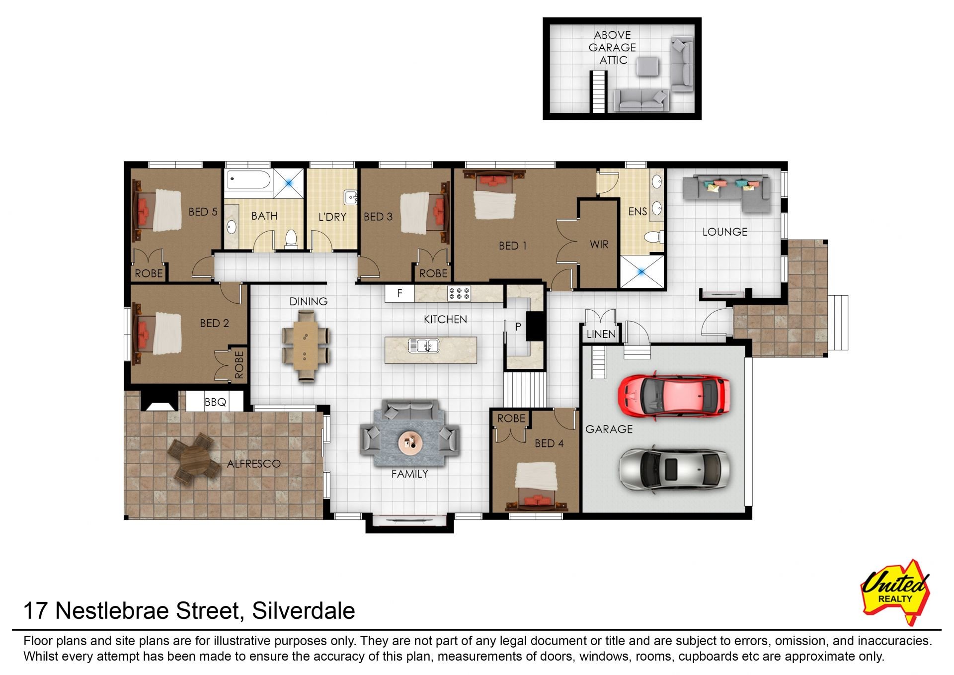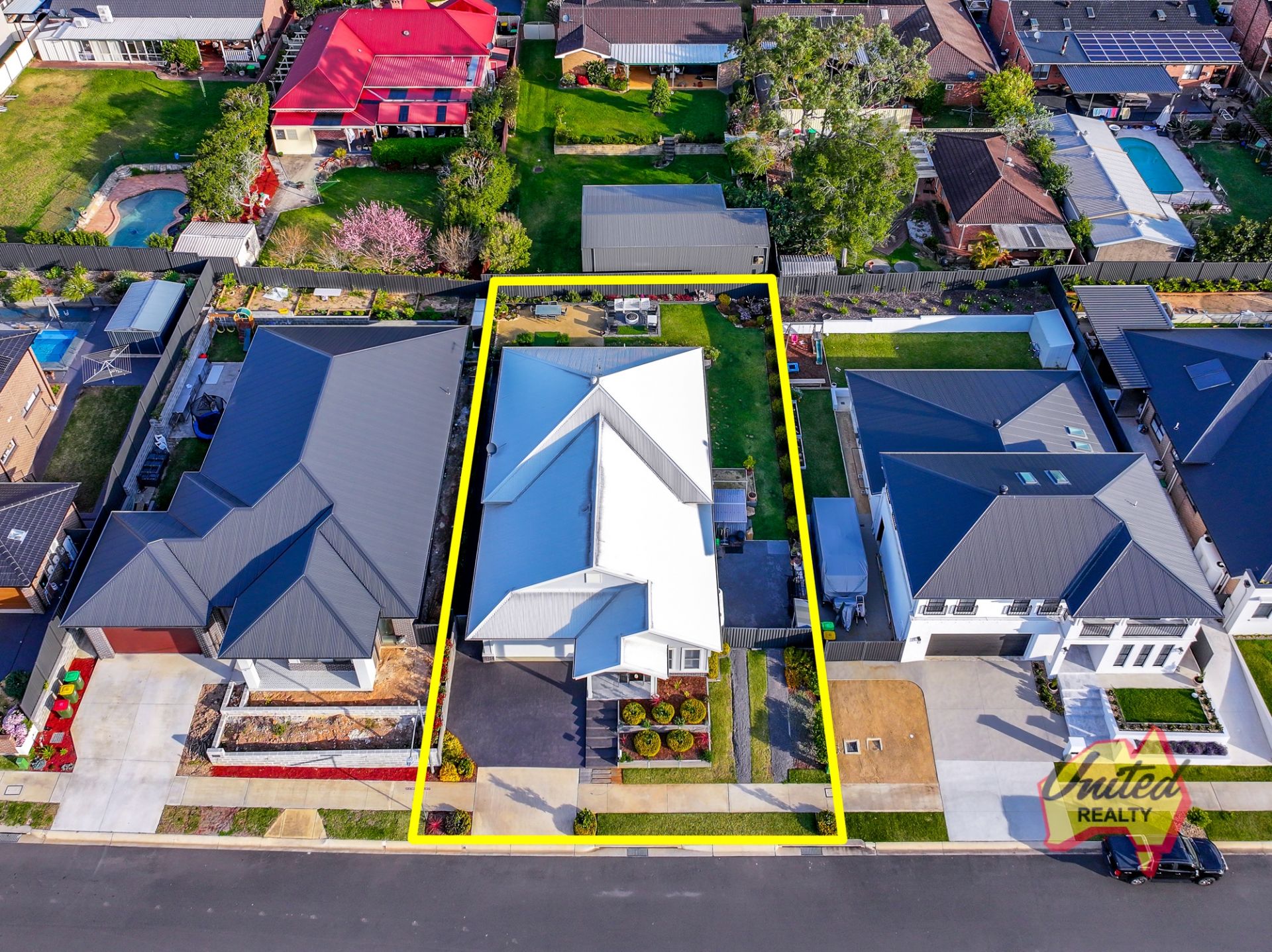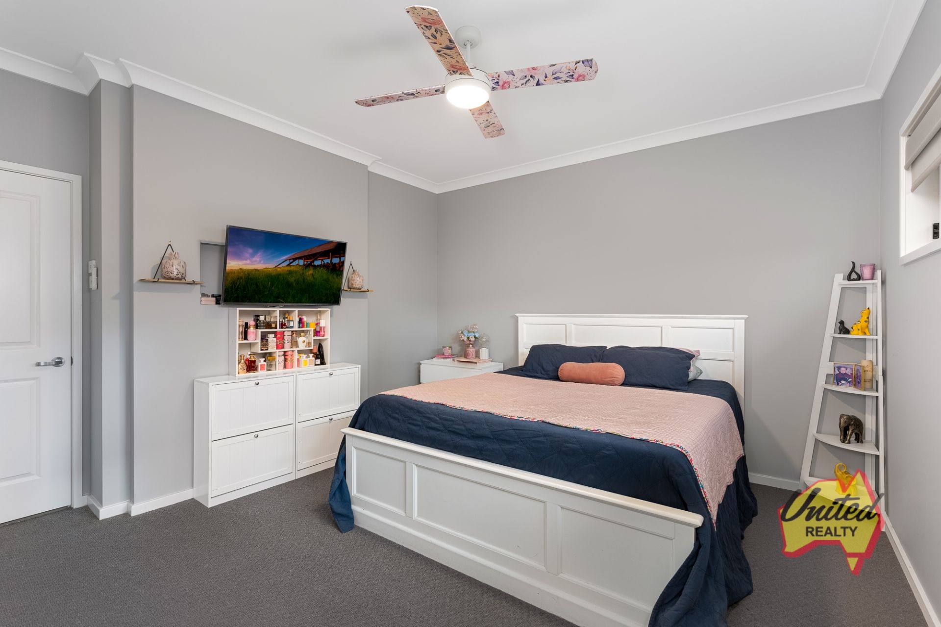 Step inside to soaring ceilings and generously sized interiors, enhanced by tiled flooring and elegant plantation shutters. The centrepiece of the home lies the open-plan living, dining and kitchen, where stainless steel appliances, a walk-in pantry with illuminated shelving, and stone benchtops create the perfect hub for family meals and gatherings. A dedicated media room provides an additional retreat, while the upstairs loft, with storage cupboard, offers the versatility of a potential sixth bedroom.